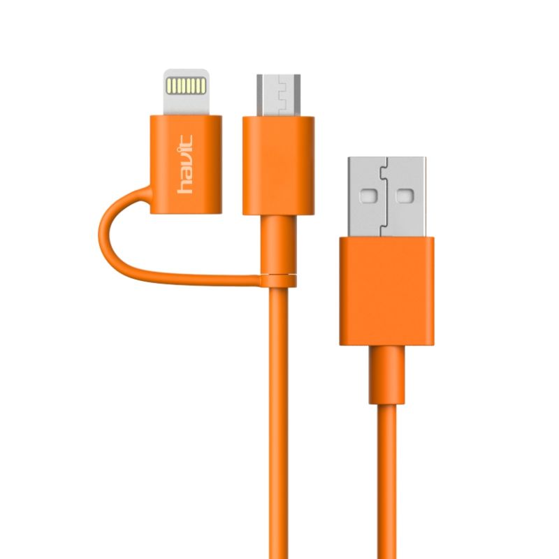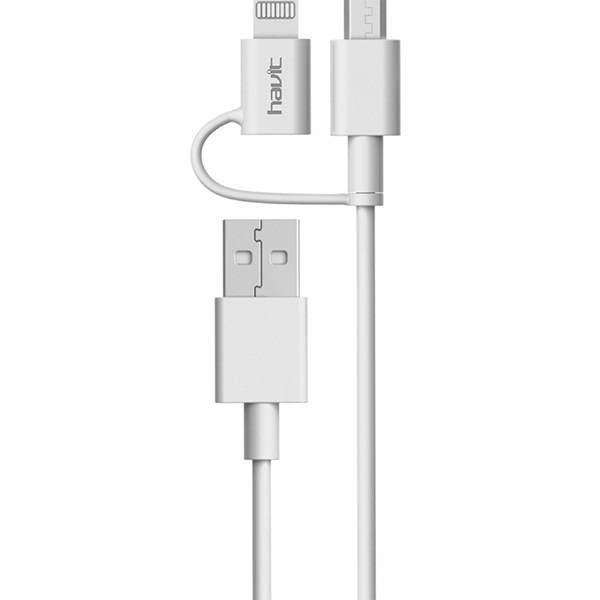 با کابل «HV-CB521» از سری کابلهای «هویت» دیگر نیاز نیست که کابل microUSB و لایتنینگ خود را با خود حمل کنید چون این کابل هر دو کانکتور را دارد و هم مناسب دستگاههای اندرویدی هم گجت های محصول اپل است. حتی اگر گوشی یا تبلت اندرویدی نداشته باشید، هدستها های بلوتوثی و پاوربانکها با کابل microUSB شارژ میشوند. جنس آن TPE است و کانکتورهای آن از آلومینیوم ساخته شده است. طول این کابل یک متر است.
